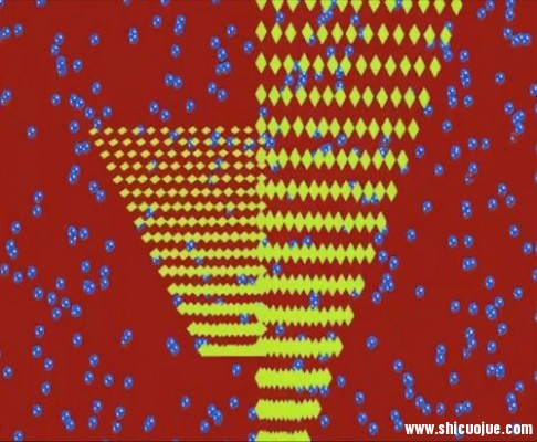 简介:一组规律的菱形组成的纹理图案倾斜向上移动时,当背景发生变化,观察者会感受到这组菱形的运动方向也会发生变化。当菱形纹理变换运动状态时,随着背景的变化而变成更为复杂的运动。这些效应说明了运动流场与诱导运动之间的复杂相互作用。